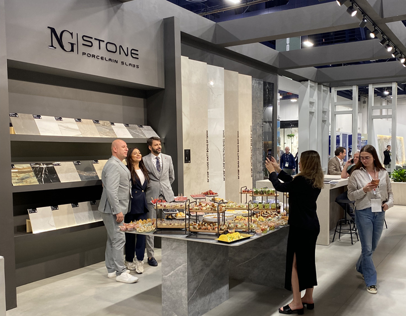 Mutfak ve yaşam alanlarında hijyeni estetikle buluşturan NG Stone, 160x320 cm ebatındaki dev plakalarıyla, fuarda porselen tezgah kategorisinde fark yarattı. NSF International gıda temas sertifikasına sahip Türkiye’nin ilk porselen seramik markası olan NG Stone; çizilme, leke ve yüksek ısı direnciyle fonksiyonelliği tasarımla birleştiriyor.