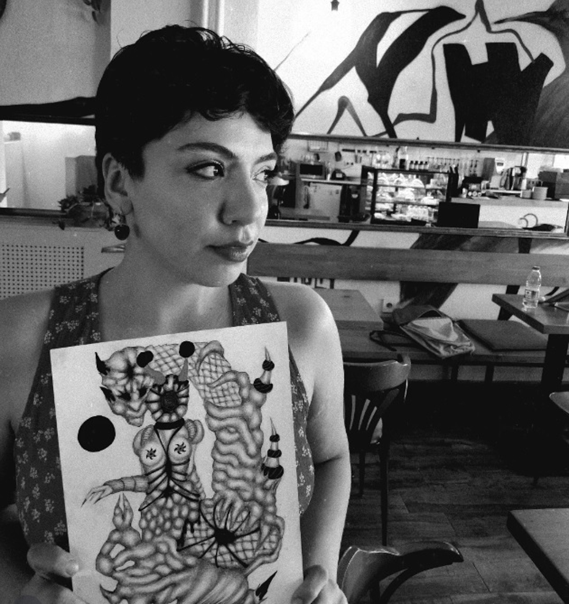 “Kesinlikle sezgisel bir süreç. Çizimler çoğu zaman planlı bir tasarımın sonucu değil; daha çok akış içinde gelişiyor. Çizgi ilerledikçe yeni formlar, dokular ve figürler de o akışın içinde kendiliğinden ortaya çıkıyor.