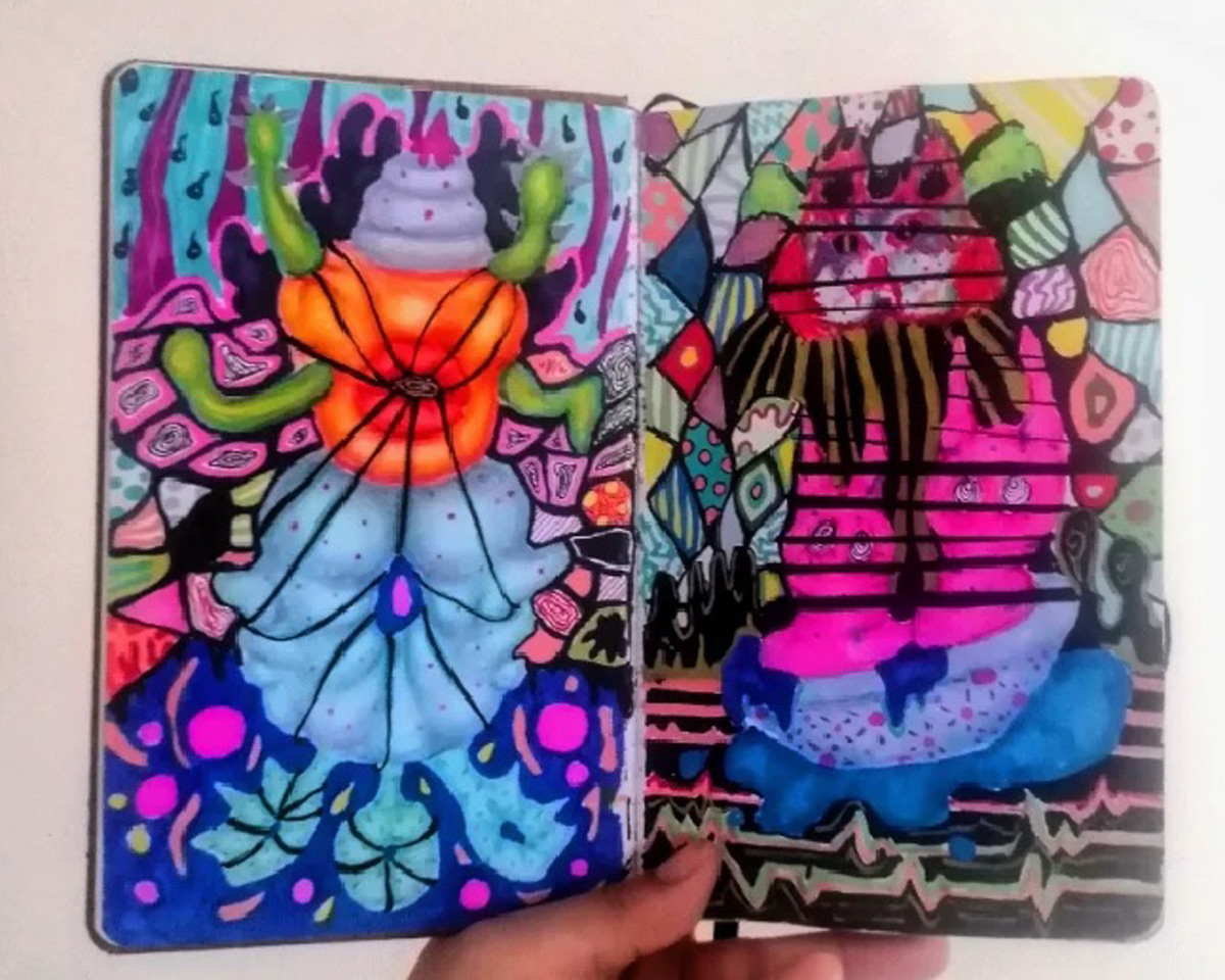 “Aslında bu kendiliğinden ortaya çıktı. Çocukluğumdan bu yana kağıt üzerinde plan yapmadan, bir akış içerisinde çizim yapıyorum.”